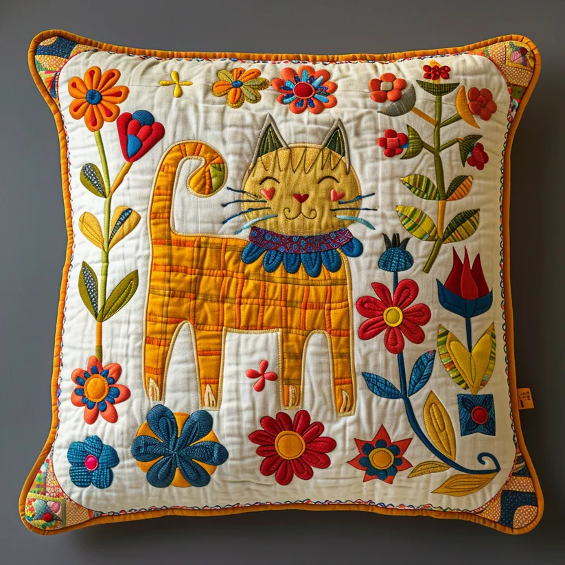 Elegant Cavalier King Charles Spaniel & Floral Quilted Pillow