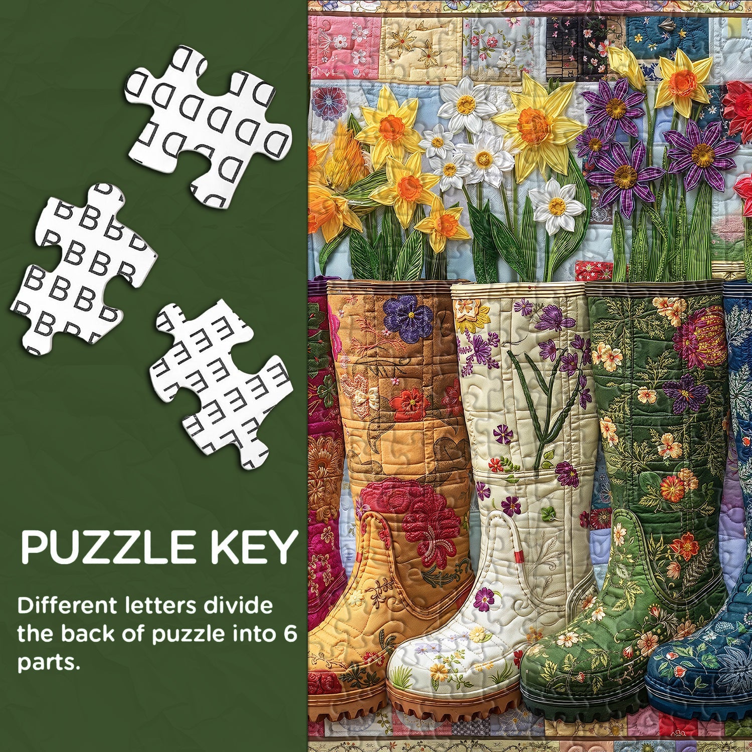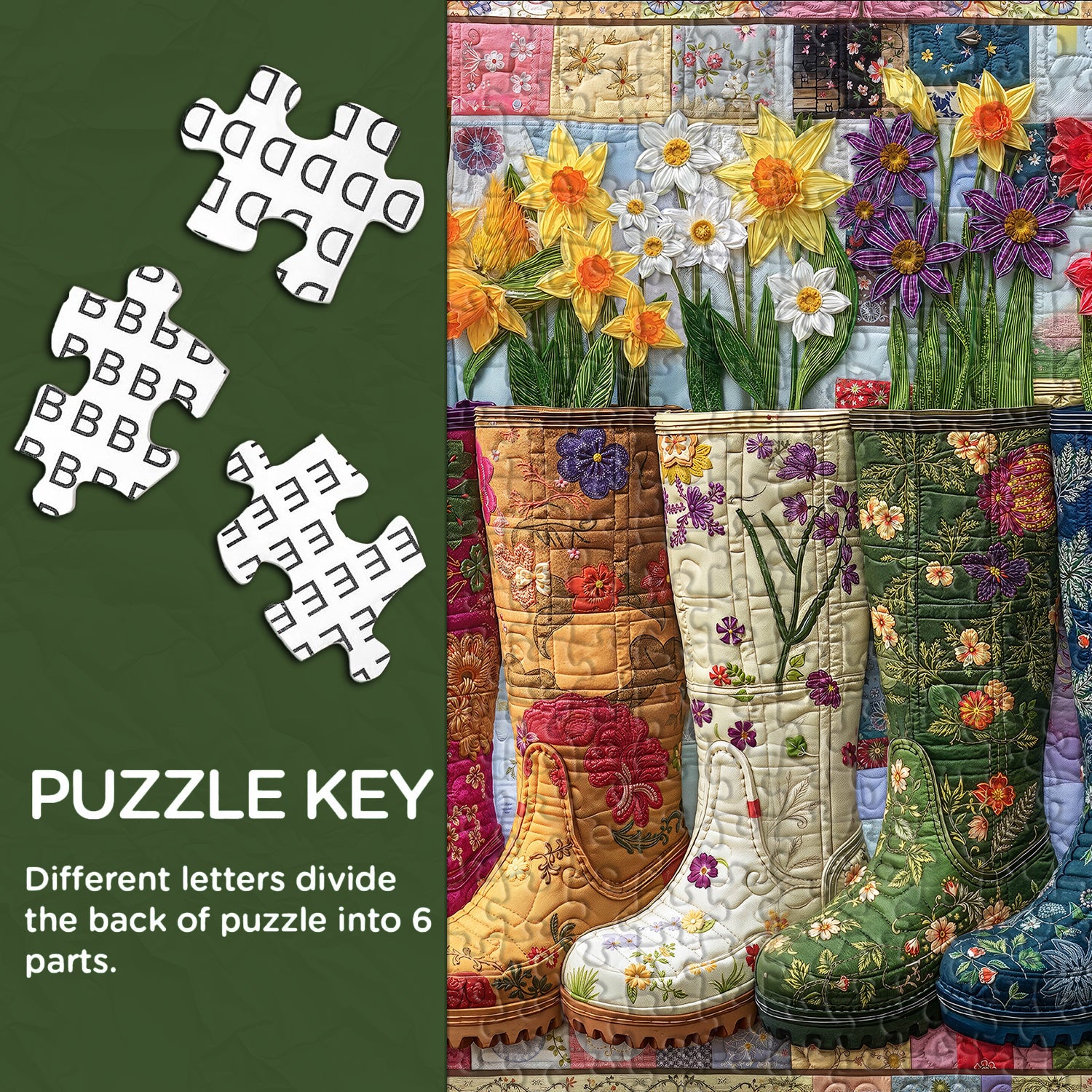 A Blooming Masterpiece Step into a whimsical garden where embroidered rain boots burst with fresh spring flowers like daffodils, irises, and more. This visually stunning puzzle is a vibrant celebration of nature and color.