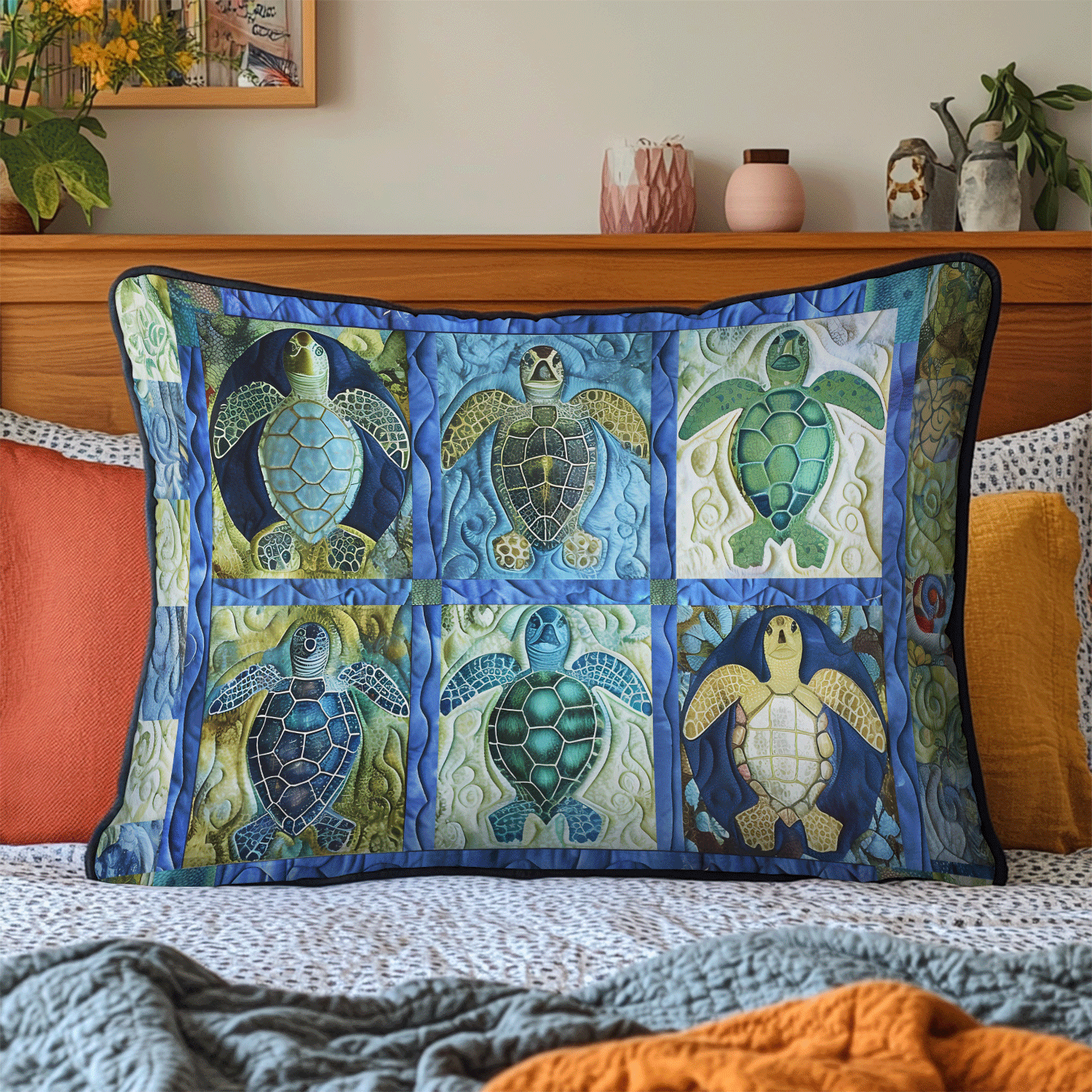 Turtle Tide Quilted Bedding Pillow Case NCU0TL2036