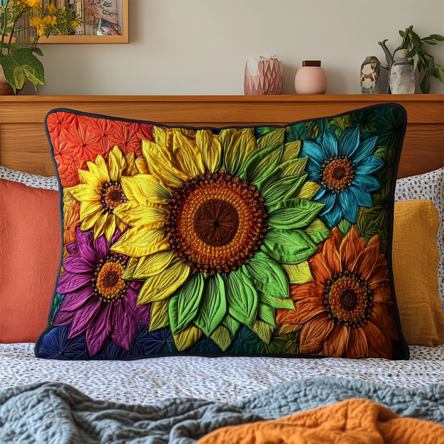 Elegant Sunflowers Quilted Bedding Pillow Case NCU0NT5787