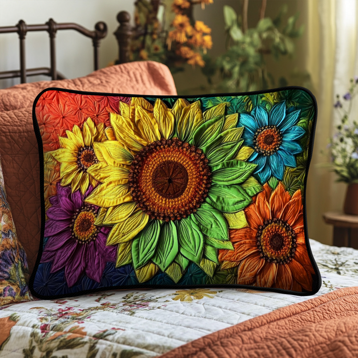 Elegant Sunflowers Quilted Bedding Pillow Case NCU0NT5787