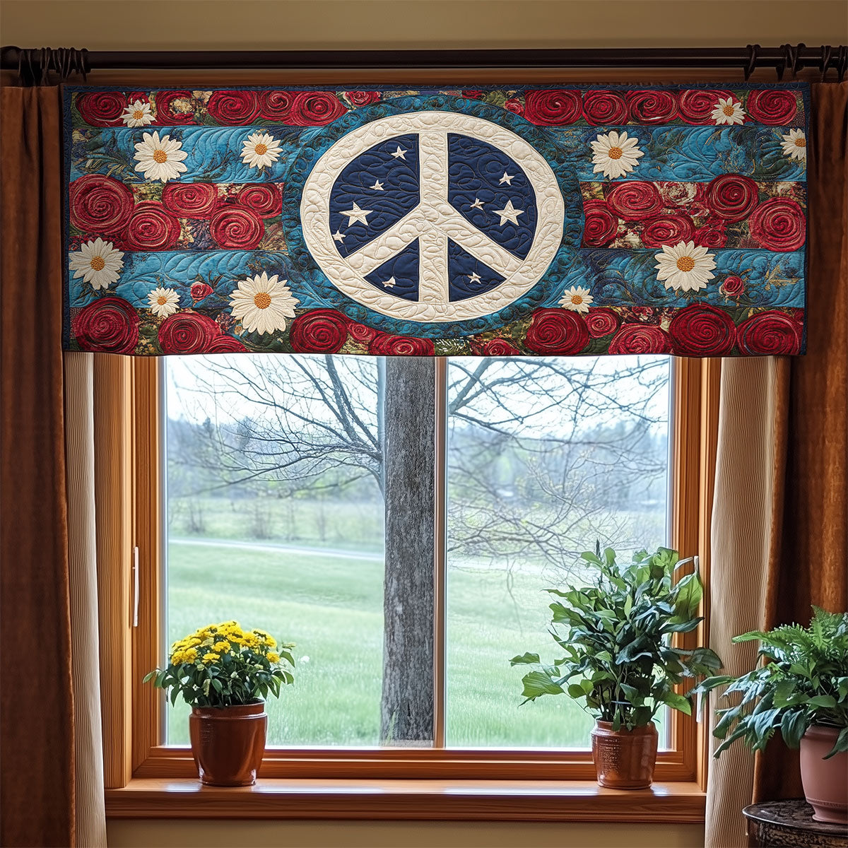 Floral Peace Sign WX1405020CL Quilted Valance