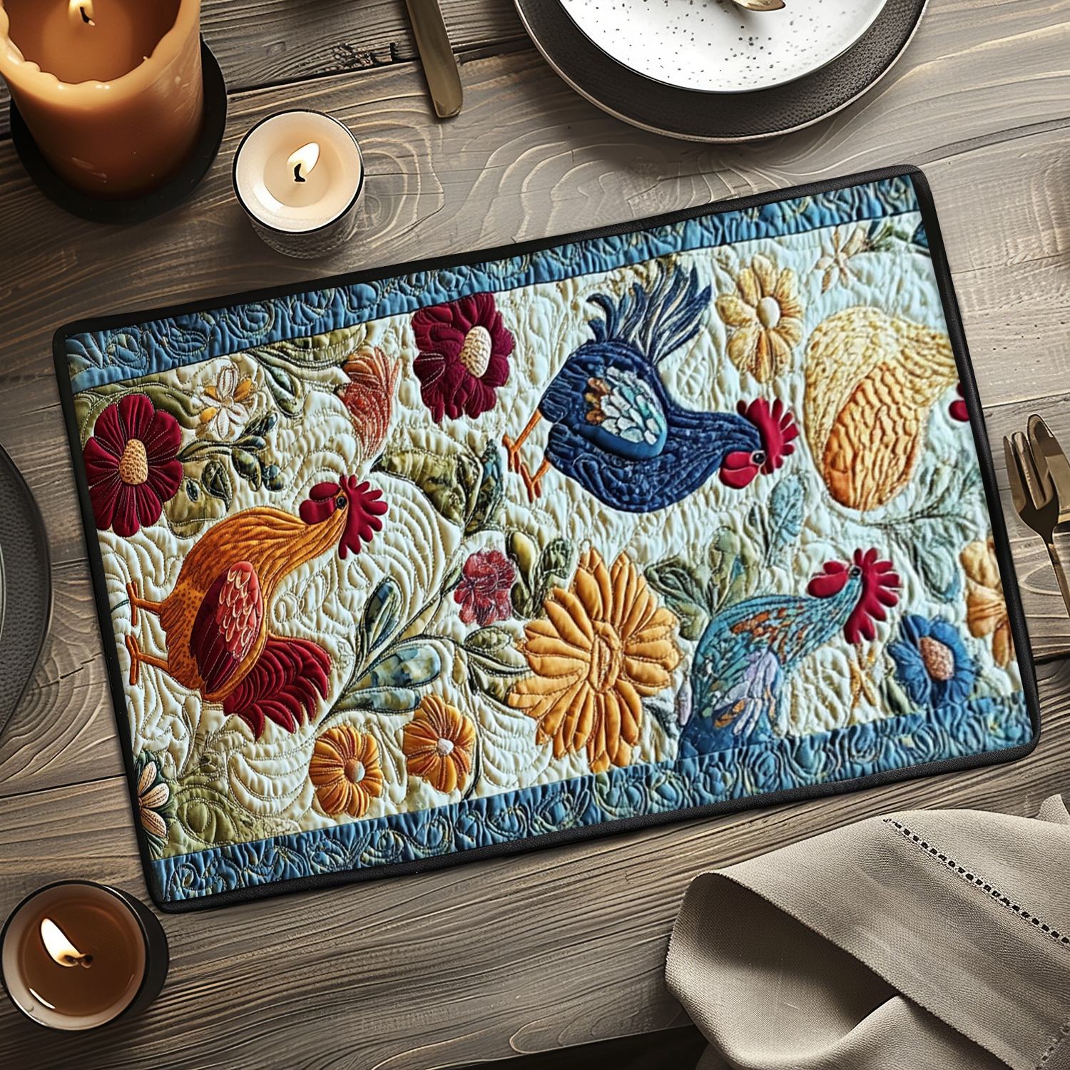 Rustic Roosters Quilted Place Mat NCU0VH4632