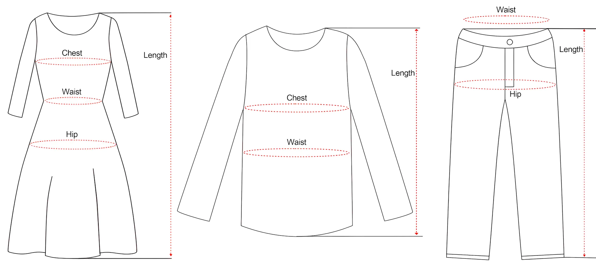 | Size | Bust | Waist | Hip Circumference | Garment Length | Pant Length |
